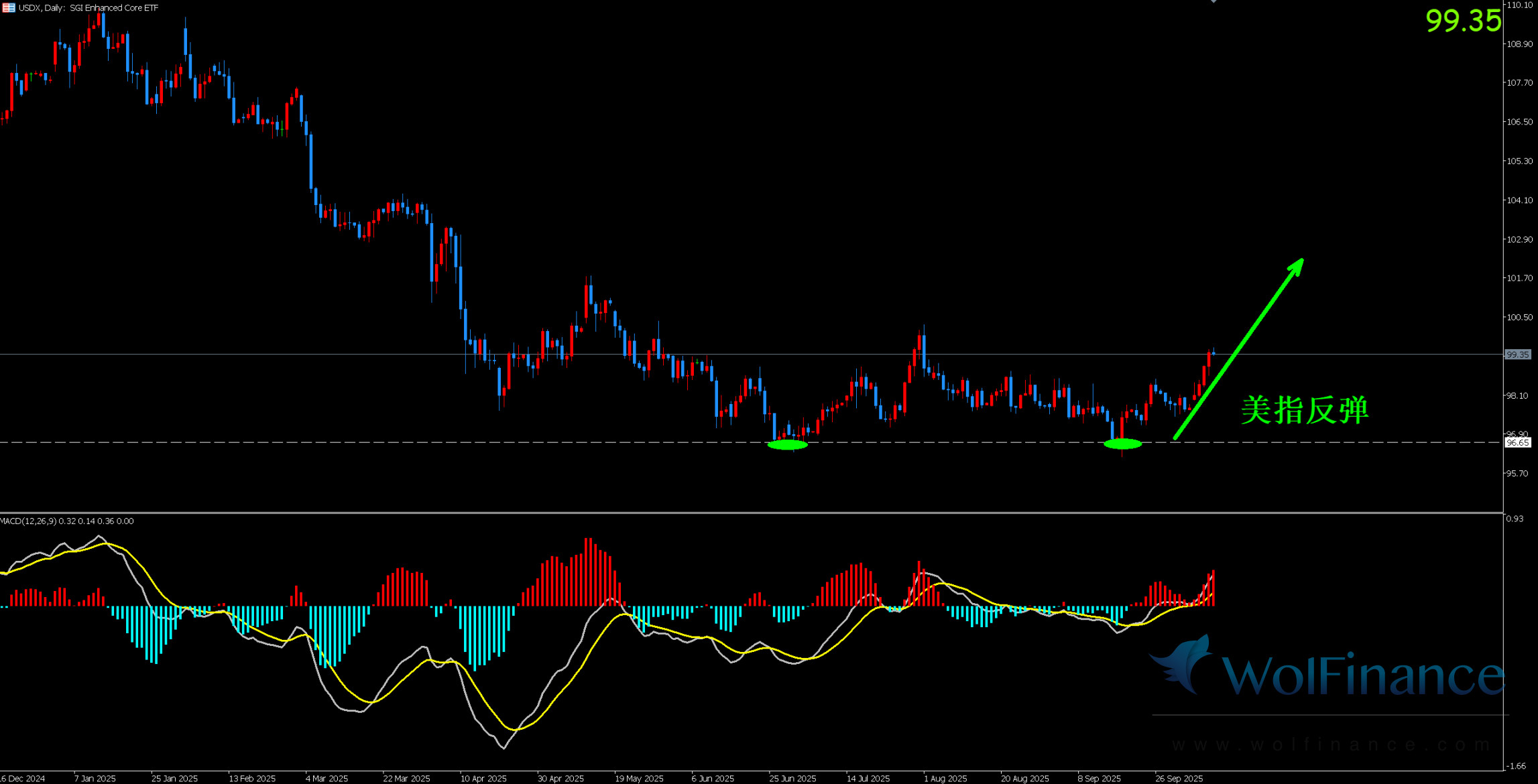 周五(10月10日)亚洲时段现货白银每盎司 48.86美元,目前银价亦在当日创下历史新高,受金价连日上涨带动,美元指数的强劲反弹是黄金下跌的另一大推手。周四,美元指数上涨0.5%,连续四个交易日走强,盘中创近两个月新高至99.55,最终收报99.37。这一升势直接抬高了以美元计价的黄金对海外买家的成本,使其吸引力下降。美联储官员的鹰派言论也为美元提供了支撑。周三公布的9月美联储会议记录显示,官员们同意美国就业市场风险高到需要降息,但对顽固通胀保持警惕。美联储理事Michael Barr周四强调,在进一步降息方面应保持谨慎,突出通胀风险的存在。尽管纽约联储主席威廉姆斯在接受采访时支持今年继续降息,考虑到就业市场可能进一步放缓,但整体基调偏向谨慎。交易员预计美联储10月和12月分别降息25个基点的概率为95%和80%,较上周有所降温。这一政策预期调整冷却了市场对激进宽松的热情,推动美元走强,从而对黄金形成压制。