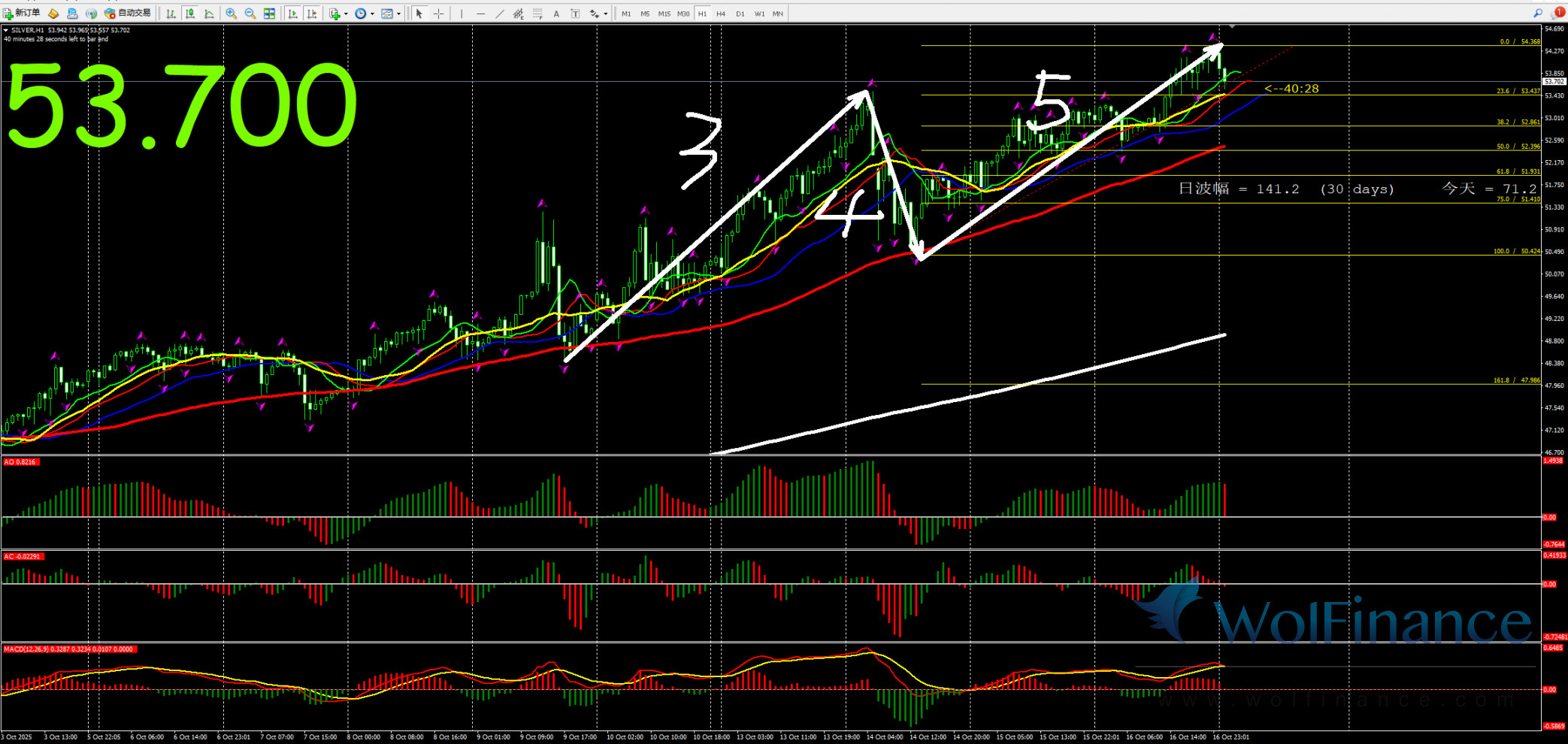 白银关注1小时图5浪行情是否结束